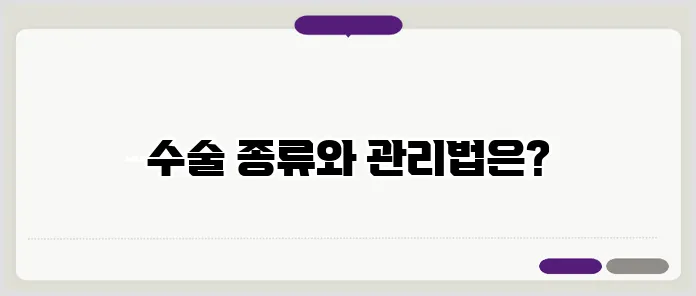 수술 후 관리는 상처 부위를 청결하게 유지하는 것이 중요합니다. 또한, 의사가 제공한 회복 지침을 철저히 따르고, 규칙적인 운동과 균형 잡힌 식사를 통해 면역력을 높이는 것이 필요합니다. 정기적인 검진과 상담을 통해 회복 상황을 체크하고, 필요한 경우 추가 치료를 받을 수 있도록 해야 합니다.