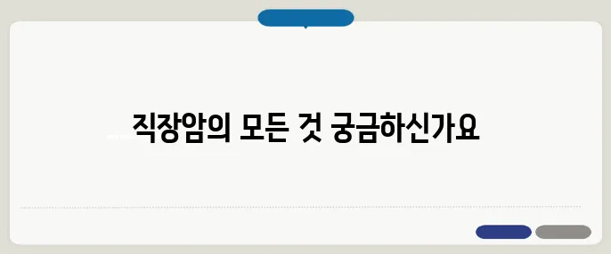 직장암은 현대 사회에서 많은 이들이 두려워하는 질병 중 하나입니다. 특히 직장암 3기는 그 진행 단계에서 생존율이 현저히 낮아지기 때문에 조기 발견과 치료가 무엇보다 중요합니다. 이 글에서는 직장암의 초기 증상부터 시작해, 3기 진단 시의 상황까지 자세히 살펴보겠습니다. 함께 알아보면서 건강을 지키는 데 도움이 되기를 바랍니다.
