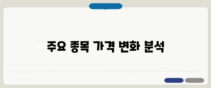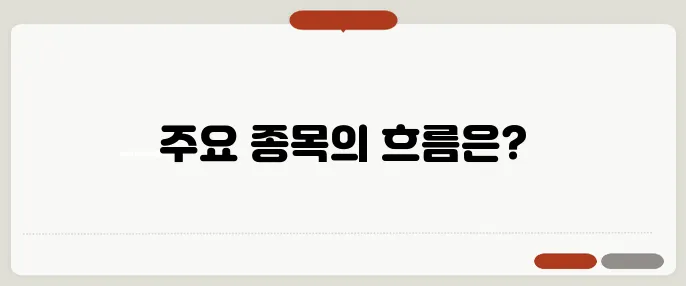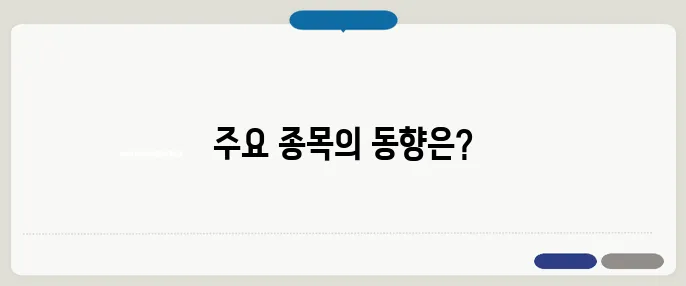 주요 종목의 종가는 각 주식이 거래되는 마지막 가격을 의미합니다. 종가가 상승했다면, 시장에서 해당 종목에 대한 수요가 높아지거나 긍정적인 뉴스가 있었음을 암시할 수 있습니다. 반대로 종가가 하락했다면, 부정적인 소식이나 시장 전체的 불안감 등이 영향을 미쳤을 가능성이 있습니다.