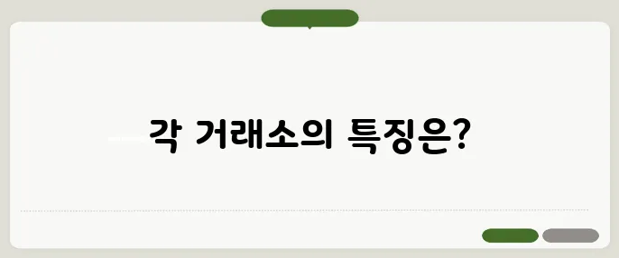 주요 거래소로는 바이낸스, 코인베이스, 업비트가 있습니다. 바이낸스는 다양한 코인과 낮은 거래 수수료로 유명 하지만, 초보자에게는 복잡할 수 있습니다. 코인베이스는 사용이 간편하지만 수수료가 상대적으로 높습니다. 업비트는 한국 시장에서 인기가 높고 다양한 원화 거래 지원을 제공합니다.